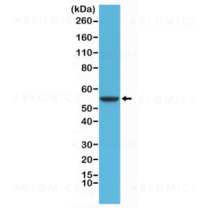 Figure 1: Western Blot of HeLa cells lysates using Anti-CK8 Rabbit Monoclonal Antibody (Clone: RM266) at a 1:1000 dilution.