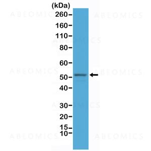Figure 1: Western Blot of mouse brain tissue lysate, using Anti-GFAP Clone: RM246 at a 1:2500 dilution, showed GFAP (~50 kDa) expression in mouse brain.