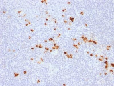 Figure 1 : Formalin-fixed, paraffin-embedded human Tonsil stained with Anti-human IgG Recombinant Rabbit Monoclonal Antibody (IG507R)