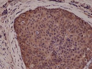 Figure 1: Immunohistochemical staining of formalin fixed and paraffin embedded human breast cancer tissue sections using Anti-p38 MAPK Clone: RM245 at a 1:5000 dilution.