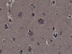 Figure 1: Immunohistochemical staining of formalin fixed and paraffin embedded human cerebral cortex tissue sections using Anti-phospho-Rsk1 (Thr359/Ser363) Clone: RM233 at a 1:200 dilution.