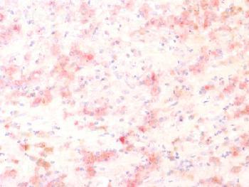 Figure 1: Formalin-fixed, paraffin-embedded human Melanoma stained with TYRP1 Rabbit Recombinant MAb (TYRP1/1564R) using AEC Chromogen.