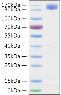 Fig 1 : Recombinant 2019-nCoV Spike S1 Protein was determined by SDS-PAGE with Coomassie Blue, showing a band at 130-160 kDa.