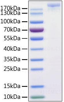 Fig 1 :Recombinant 2019-nCoV S1+S2 ECD (S-ECD) Protein with His tag was determined by SDS-PAGE with Coomassie Blue, showing a band at 170-220 kDa.