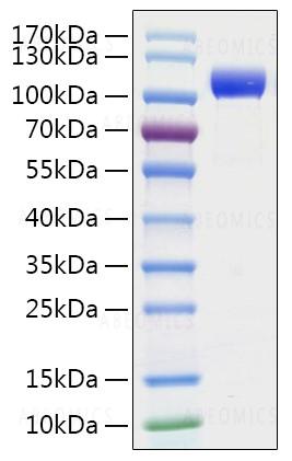 Figure-1: Recombinant COVID-19 Spike S1 Protein was determined by SDS-PAGE with Coomassie Blue, showing a band at 110-130 kDa.