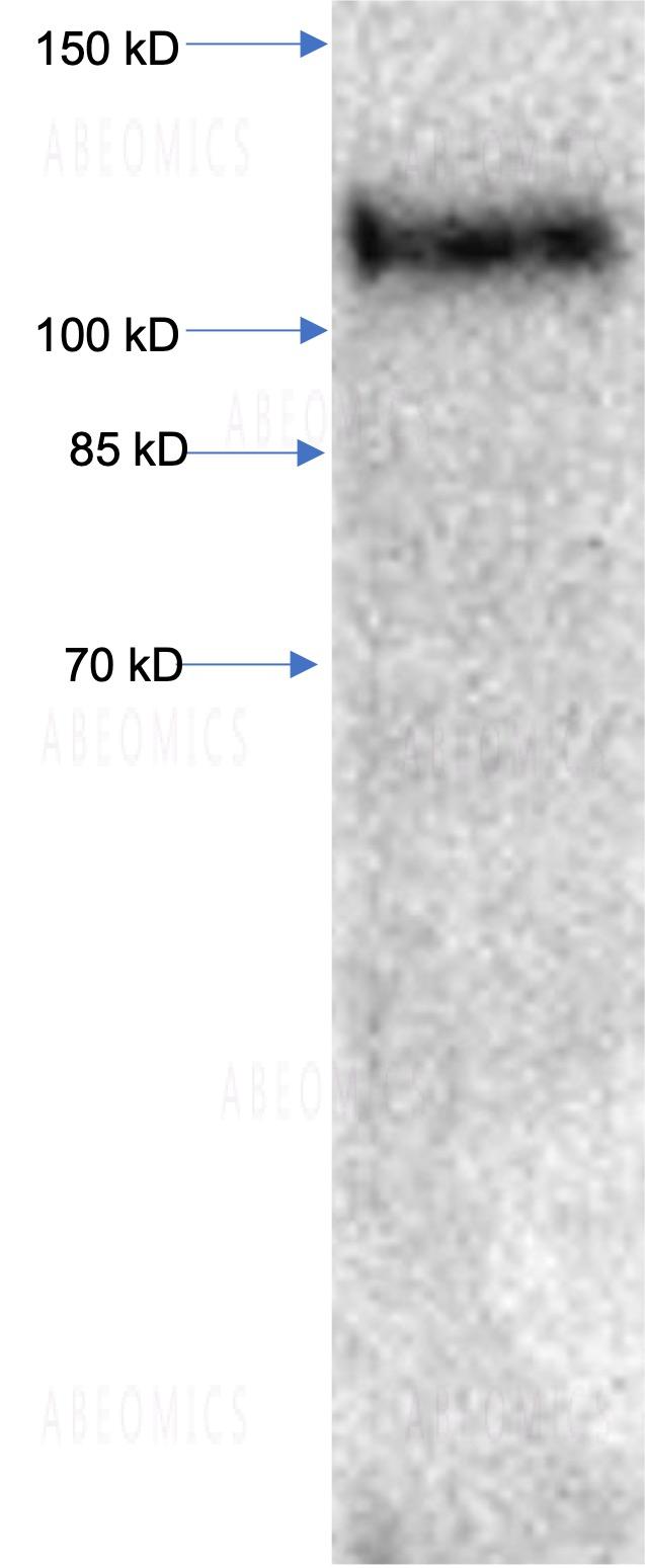 Figure 1: Western Blot analysis of TLR5-Fc (21-1020). 5ug of recombinant protein was loaded. Goat Anti-Human IgG HRP was used in western.