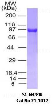 | AA sequence : | The target protein is expressed with sequence (AA 14-683) of SARS-CoV-2/COVID-19 Spike S1 sequence with mutation at 439aa (N439K) fused with a 10×His tag in C-Terminal. |