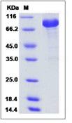 The recombinant S1 subunit of SARS-CoV (isolate:WH20) spike comprises 665 amino acids and has a predicted molecular mass of 74.4 kDa. The apparent molecular mass of the protein is approximately 85.8 kDa in SDS-PAGE under reducing conditions.