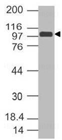 Figure-1: Western Blot analysis of SARS CoV2 Spike S1 Antibody: Anti- SARS CoV2 Spike S1 Antibody (Clone: ABM3D6.1G6) was used at 0.5 µg/ml on mammalian expressed full-length COVID-19 Spike protein (50ng/ lane).