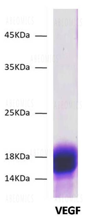 Figure-1: SDS-PAGE analysis of purified Recombinant VEGF Protein was run on a 4-20% Gradient SDS-PAGE (Reducing) gel followed by Coomassie blue staining.