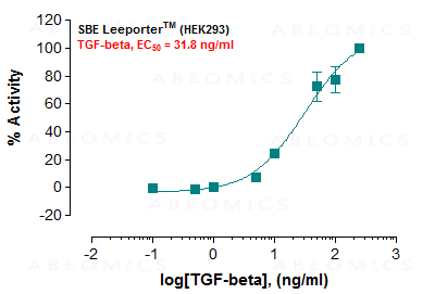 Fig-1: Induction of SBE activity by TGF-beta in SBE Leeporter™ - HEK293 cells.