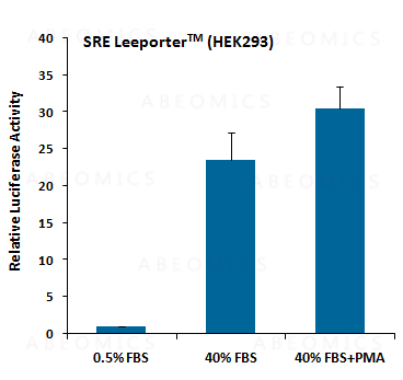 Fig-1: Induction of SRE activity by FBS or FBS plus PMA in SRE Leeporter™ - HEK293 cells.
