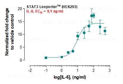 Fig-1. Induction of STAT3 activity by IL-6 in STAT3 Leeporter™ - HEK293 cells.