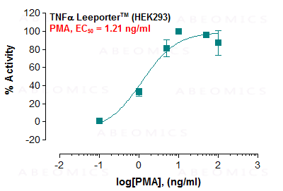 A. Response of TNF-alpha Leeporter™ – HEK293 cells to phorbol 12-myristate 13-acetate.