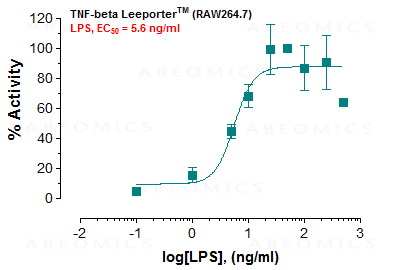 A. Response of TNF-beta Leeporter™ – RAW264.7 cells to lipopolysaccharide (LPS).
